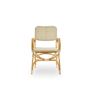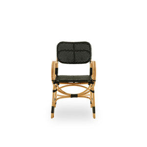 La silla bistró está diseñada con hermosos reposabrazos curvos que brindan buen confort y soporte adicional. Es una refinada silla para comer diseñada para brasseries (tabernas), cafés y restaurantes; sin embargo también es adecuada para uso doméstico ordinario.El mobiliario está hecho para uso interior pero también puede ser utilizado en terrazas cubiertas o exteriores bajo sombrillas.Aquí sin embargo es importante asegurarse que el mobiliario tenga oportunidad secarse completamente si ha estado expuesto a humedad.