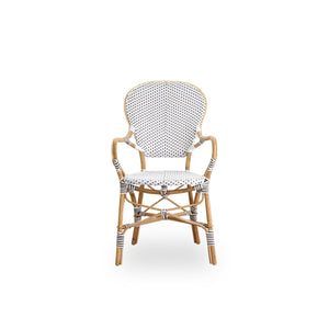 La silla Isabell tiene apoyabrazos, lo que proporciona un soporte y comodidad adicionales. La silla está diseñada para brasseries, cafés y restaurantes, pero también es adecuada para el hogar común. La silla está hecha para uso en interiores, pero se puede utilizar en exteriores en áreas cubiertas y no debe estar expuesta a la lluvia y la humedad.
