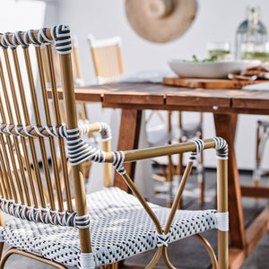 Nuestras sillas Alu-Affäire están tejidas a mano con ArtFibre, un material extremadamente duradero y resistente a la intemperie hecho de polietileno. Por lo tanto, las sillas pueden soportar fuertes lluvias, clima helado y la radiación UV del sol, y pueden dejarse al aire libre durante todo el año sin comprometer el diseño o la calidad.