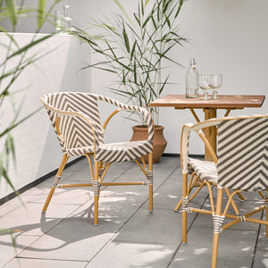 Madeleine es una encantadora silla de comedor para exteriores y forma parte de la colección Alu-Affäire de Sika-Design. Nuestra colección Alu-Affäire representa una selección única de muebles para bistró y cafetería al aire libre. Estos muebles están inspirados en los propios diseños de Sika-Design de la década de 1950 y en el encantador ambiente parisino de los bistrós.