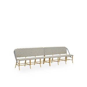 The Sofie Exterior 6-Seater bench is designed by Sika-Design. The bench is handcrafted in Alu-Rattan and ArtFibre, and therefore has a unique strength and durability. Alu-Rattan is weather-resistant powder-coated aluminum and ArtFibre is artificial fibers made from polyethylene. Due to the weather-resistant materials the chair can stand outside all year round.