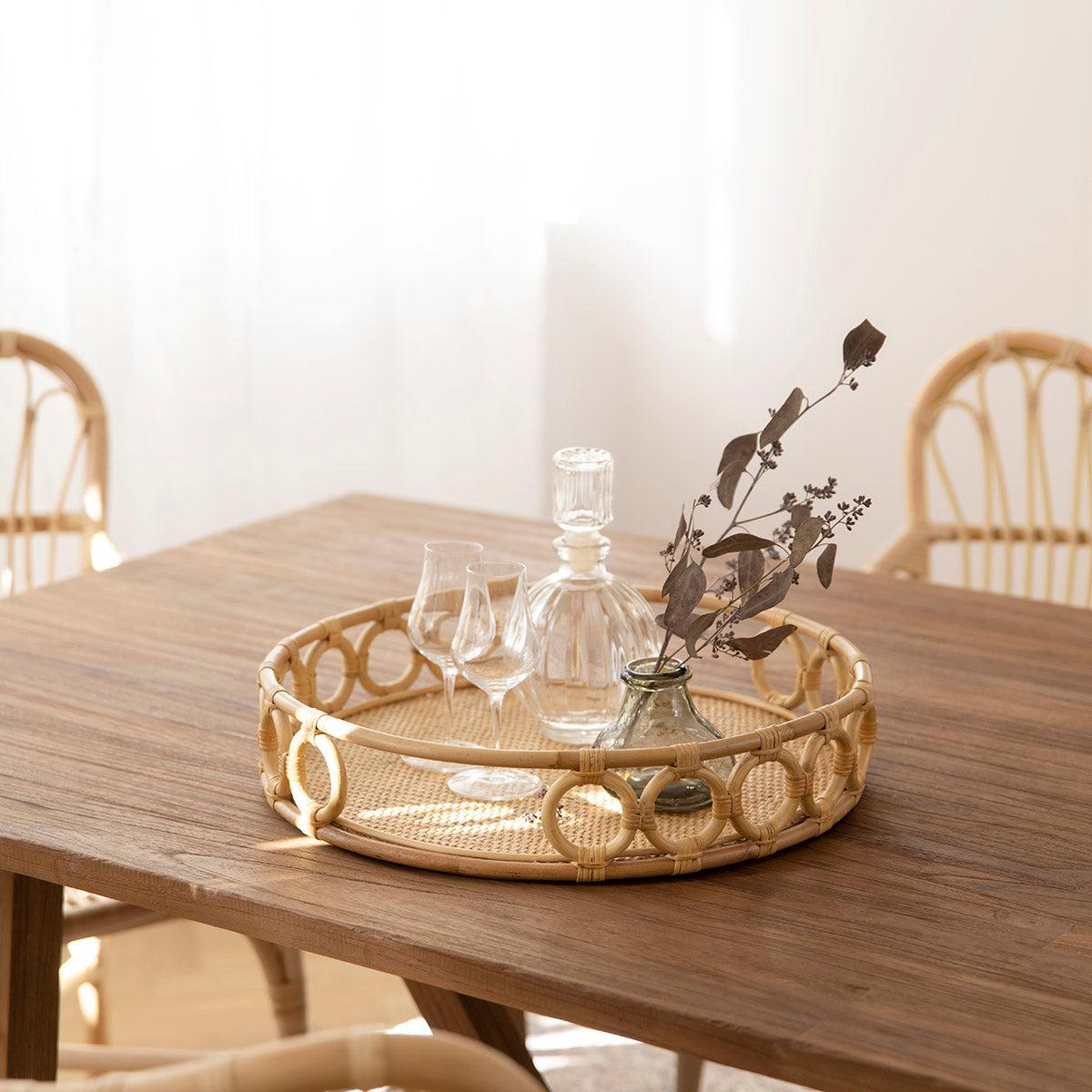 Mira es una bandeja de mimbre diseñada por Sika-Design. La bandeja está hecha a mano con ratán indonesio y se puede usar como bandeja para servir o como elemento decorativo en el interior.