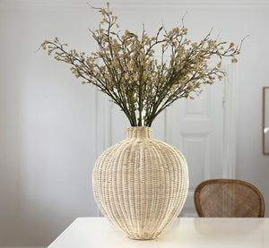 Flumen es una cesta decorativa con formas suaves y orgánicas, ideal para flores secas o artificiales. La cesta está tejida a mano en ratán natural, por lo que pueden existir pequeñas variaciones en color y forma.