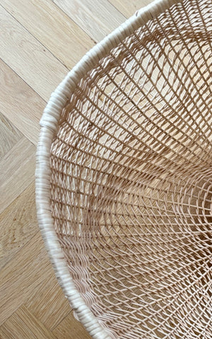 Este artículo está hecho a mano en ratán, que es una planta trepadora que crece como lianas en los árboles de la selva tropical de Indonesia. A menudo se confunde el ratán con el bambú, pero a diferencia del bambú hueco, el ratán es un material sólido. Esto hace que los productos de ratán sean muy duraderos y casi imposibles de desgastar.