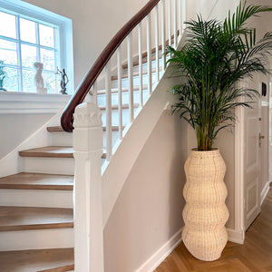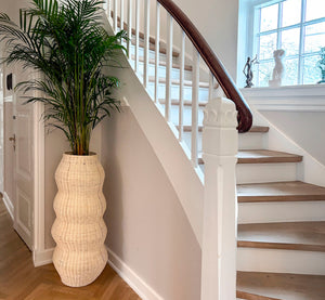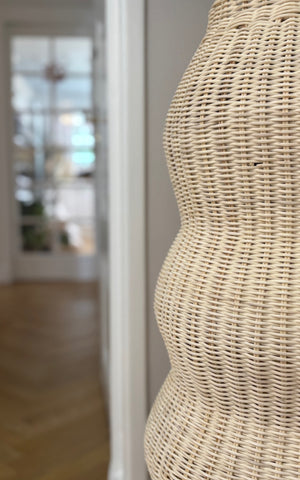 Unda es una gran cesta decorativa con una altura de 102 cm. La cesta está tejida a mano con el material natural ratán, por lo que puede haber pequeñas variaciones en color y forma.