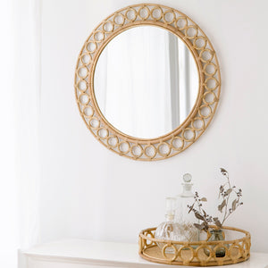 Mira es un espejo decorativo diseñado por Sika-Design. El espejo tiene hermosos detalles de mimbre elaborados a mano con ratán indonesio. El espejo Mira encaja perfectamente en el recibidor, en un baño pequeño o como parte de la decoración de la pared en el salón.