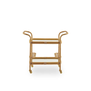 El carrito Carlo Trolley representa tanto la estética como la hospitalidad. Es ideal para almacenar y servir, y las ruedas facilitan su desplazamiento por la terraza. Este carrito decorativo y práctico es muy solicitado en su versión de interior en ratán. Ahora lo presentamos como novedad en Alu-Rattan, disponible en el nuevo color natural.