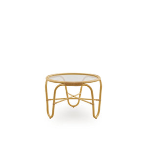 La mesa de café exterior Charlottenborg está diseñada por Arne Jacobsen y está hecha de Alu-Rattan y ArtFibre.Alu-Rattan es aluminio recubierto de polvo resistente a la intemperie y ArtFibre son fibras artificiales hechas de polietileno sin mantenimiento que pueden resistir la radiación UV del sol. Debido a los materiales resistentes a la intemperie, los muebles pueden permanecer afuera durante todo el año sin necesidad de mantenimiento.