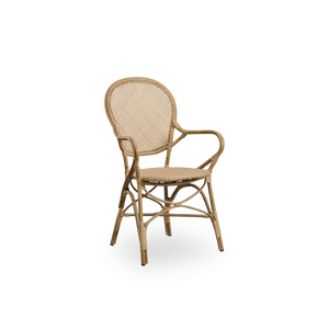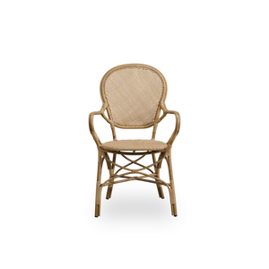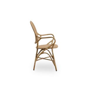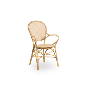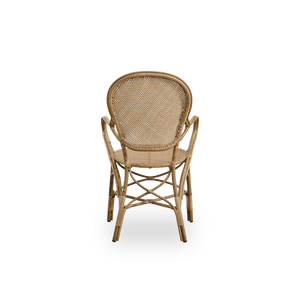 La silla Rossini Exterior está hecha a mano en aluminio y ArtFibre. Estos materiales son resistentes a los rayos UV y a la intemperie, por lo que el mobiliario puede permanecer al aire libre durante todo el año.