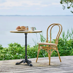 La silla de comedor Lulu Exterior está inspirada en la clásica silla de bistró. Está hecha a mano con materiales resistentes a la intemperie como Alu-Rattan y ArtFibre. Alu-Rattan es aluminio recubierto de polvo resistente a la intemperie, y ArtFibre son fibras artificiales hechas de polietileno sin mantenimiento que pueden resistir la radiación UV del sol. Debido a los materiales resistentes a la intemperie, los muebles pueden permanecer afuera durante todo el año sin necesidad de mantenimiento.