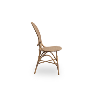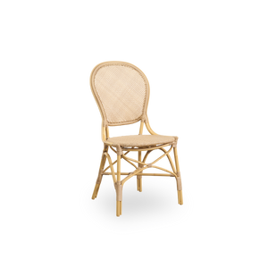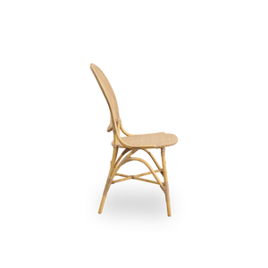 La silla Rossini Exterior está hecha a mano en aluminio y ArtFibre. Estos materiales son resistentes a los rayos UV y a la intemperie, por lo que el mobiliario puede permanecer al aire libre durante todo el año.