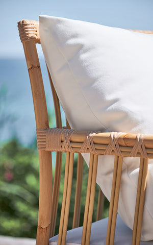 El sillón Caroline Exterior incluye un cojín de asiento; los cojines de respaldo se venden por separado. Estos se ofrecen en una selección de colores. También ofrecemos confeccionar cojines con su propia tela; contáctenos para información sobre uso de telas y precios. Los cojines están equipados con Quickdry Foam, una espuma de secado rápido especialmente desarrollada para drenar el agua y maximizar la circulación del aire, acelerando así el proceso de secado.
