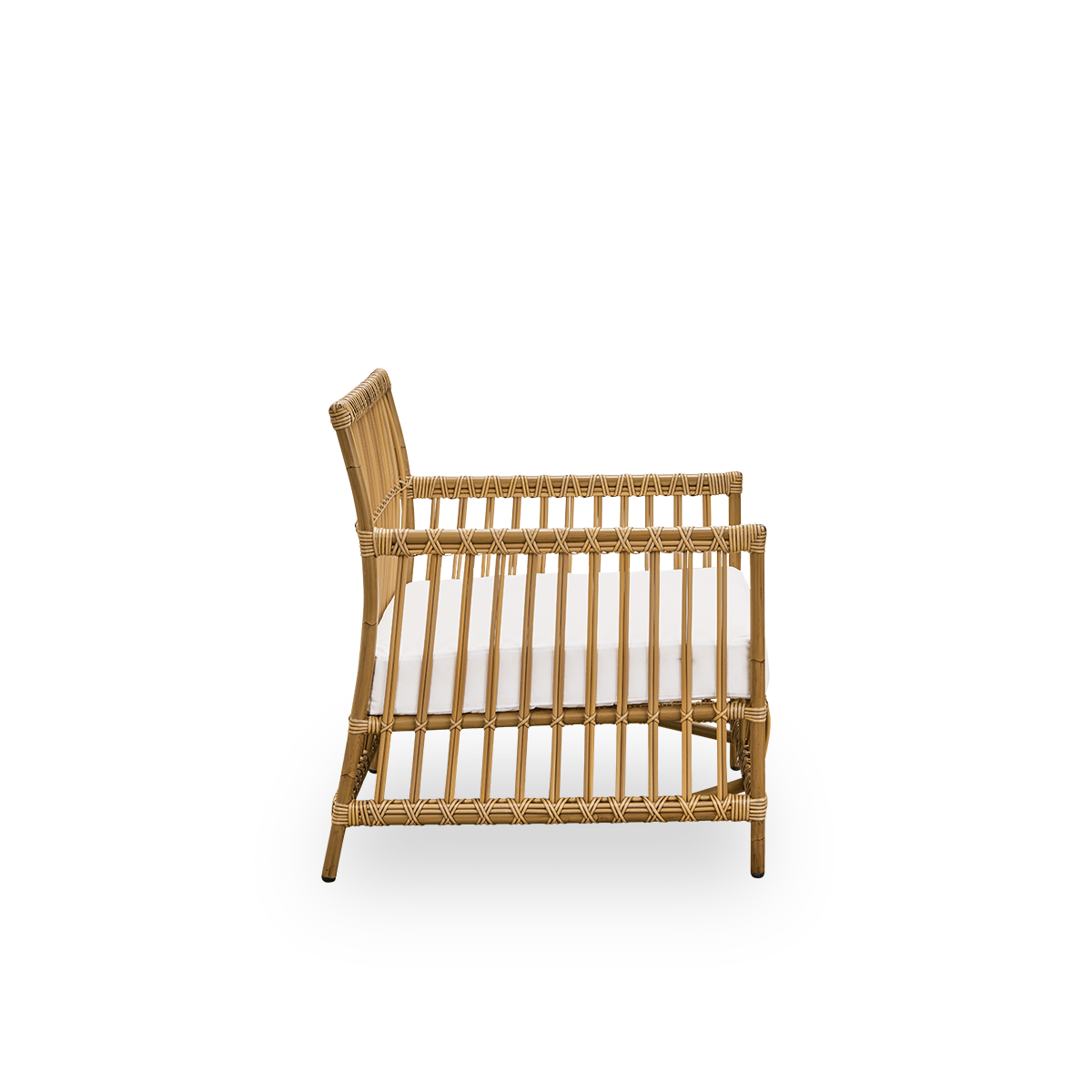 Caroline Exterior está hecha a mano en Alu-Rattan y ArtFibre, lo que le otorga una resistencia y durabilidad únicas. Alu-Rattan es aluminio con recubrimiento en polvo resistente a la intemperie y ArtFibre son fibras artificiales hechas de polietileno. Gracias a estos materiales resistentes al clima, el sillón puede permanecer al aire libre todo el año sin comprometer el diseño ni la calidad.