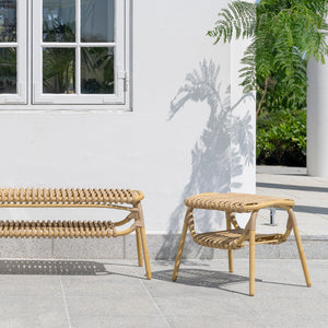 Nuestro taburete exterior Machiya está hecho a mano en Alu-Rattan y ArtFibre, por lo que tiene una resistencia y durabilidad únicas. Alu-Rattan es aluminio recubierto de polvo resistente a la intemperie y ArtFibre son fibras artificiales hechas de polietileno. Debido a los materiales resistentes a la intemperie, el taburete puede permanecer afuera durante todo el año, sin afectar el diseño o la durabilidad.