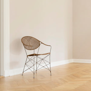 La silla de comedor Funky fue diseñada por Yuzuru Yamakawa en 1996. El marco está hecho de acero que ha sido tejido a mano con ratán indonesio. Las elegantes líneas de la silla reflejan las raíces japonesas de Yamakawa, que logró combinar de la mejor manera con la artesanía tradicional indonesia.