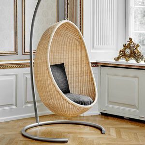 Hanging Egg es especialmente adecuada para habitaciones con techos altos, donde hay aire y espacio suficiente para que la elegante silla hamaca luzca todo su esplendor. La silla puede colgarse de dos maneras: ya sea con una cadena directamente al techo o mediante un soporte independiente. Ambos se adquieren como complementos adicionales. La cadena para el techo mide 150 cm y puede acortarse según sea necesario. No se incluye gancho para el techo, ya que depende del tipo de techo.