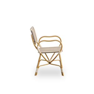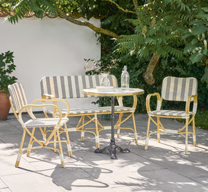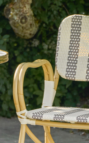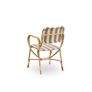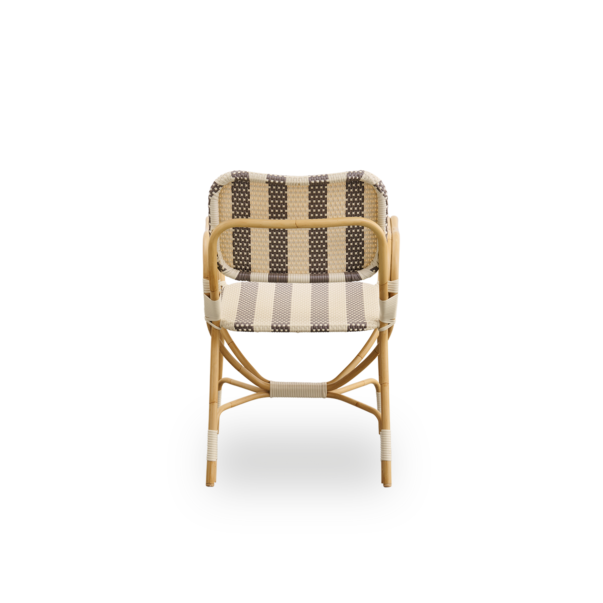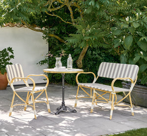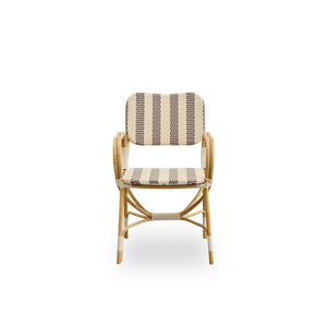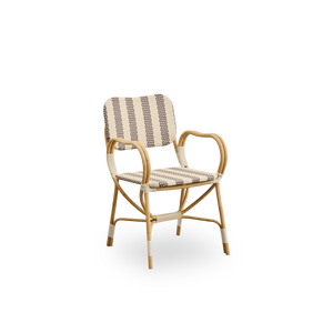 La silla Bistro está diseñada con hermosos apoyabrazos curvados que brindan una buena comodidad y un soporte adicional. La silla es una silla de comedor refinada que está diseñada para brasseries, cafés y restaurantes, pero también es adecuada para el hogar común. La silla Bistro Exterior está hecha a mano en aluminio y ArtFibre, lo que la hace resistente a todo tipo de clima.