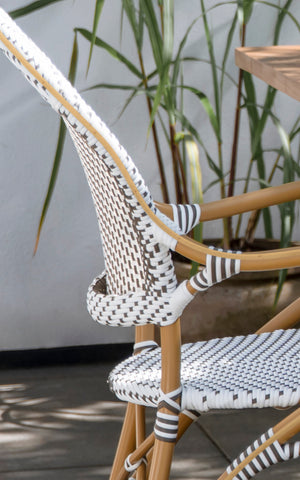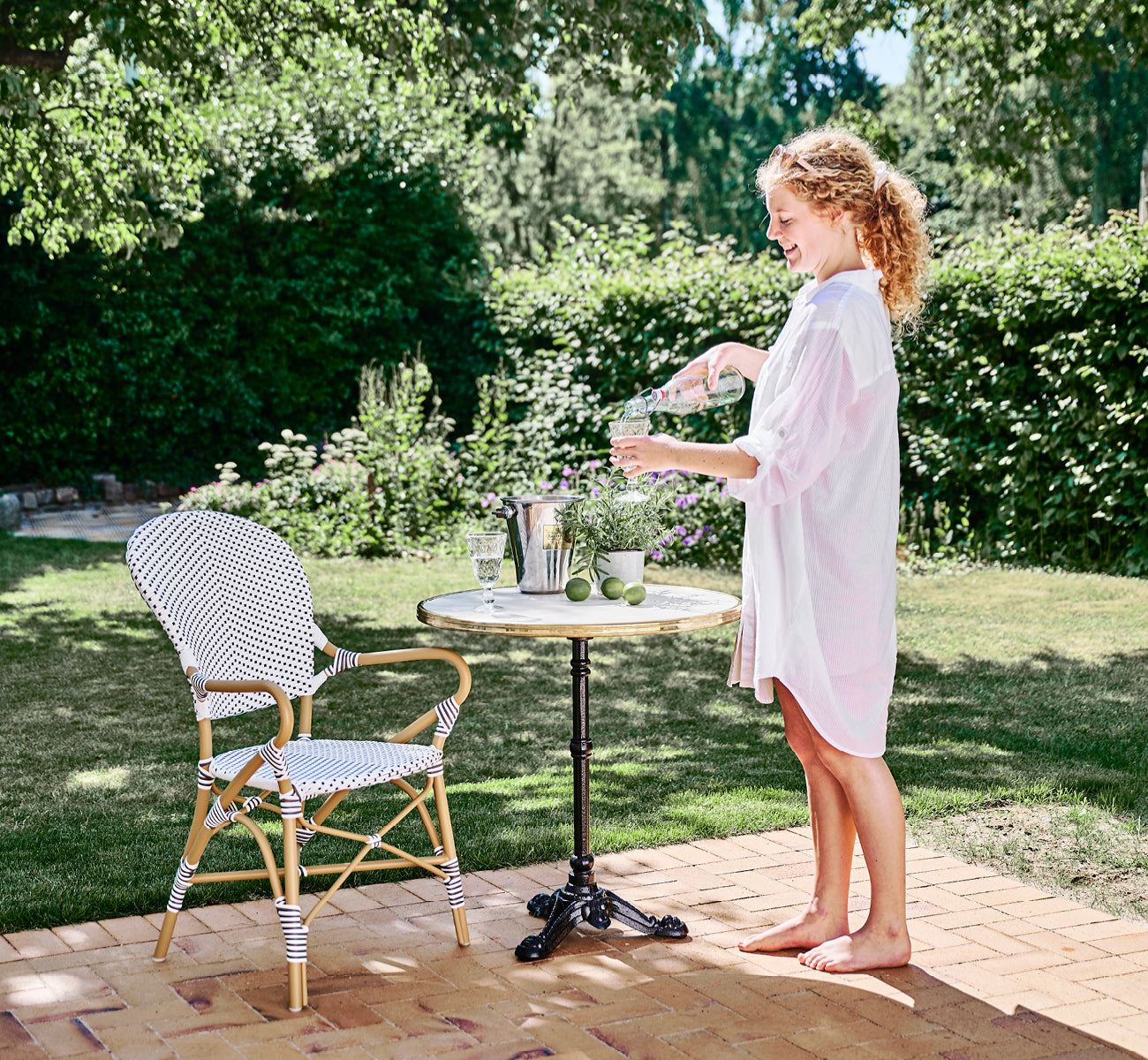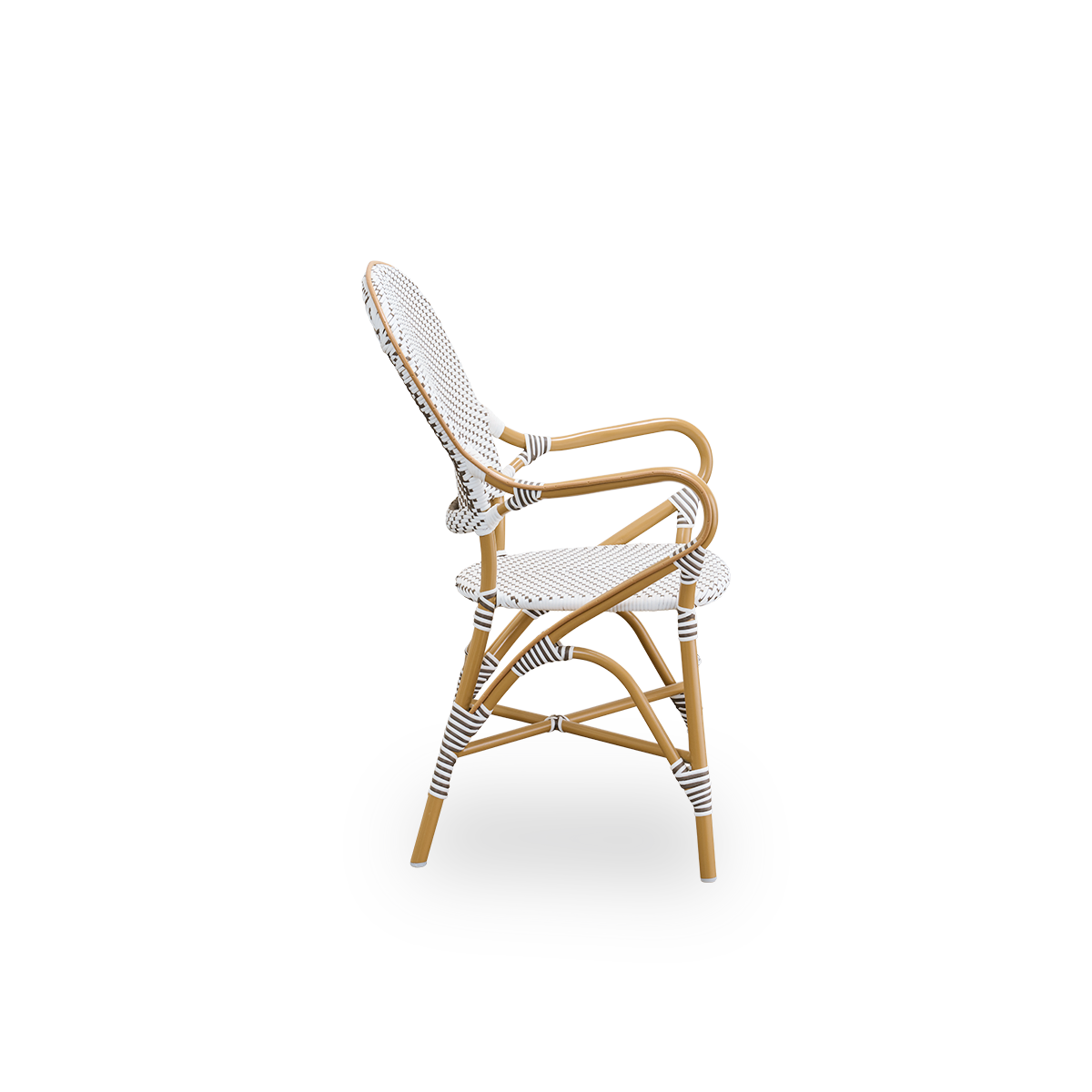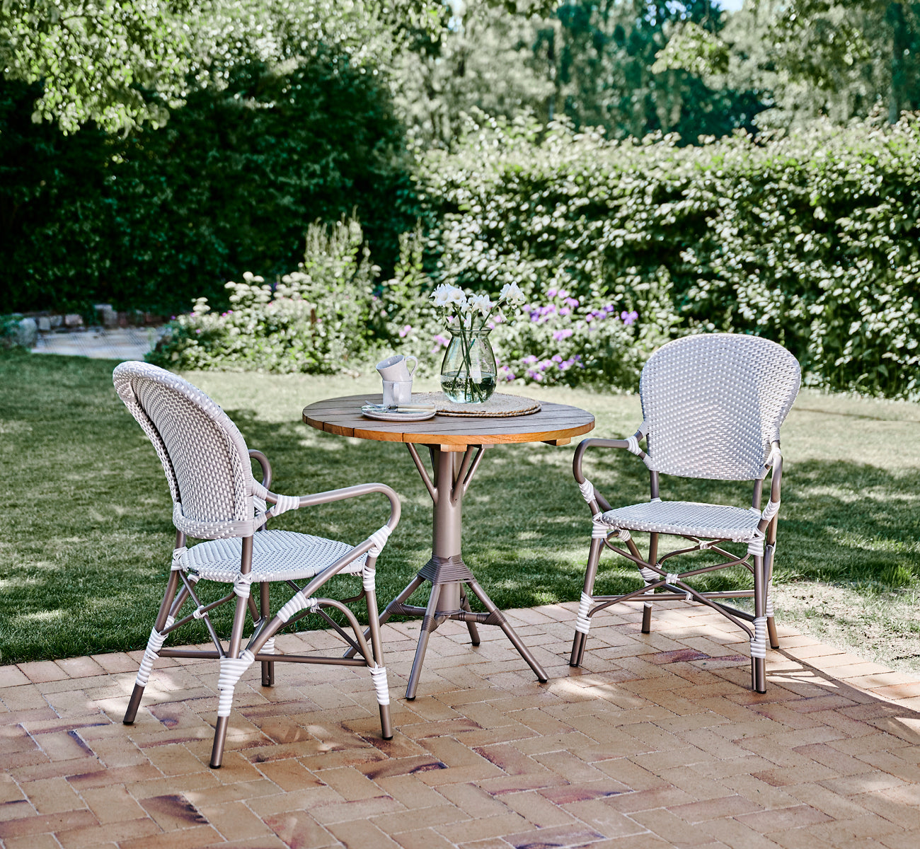 Isabell es una encantadora silla de comedor al aire libre y forma parte de la colección Alu-Affäire de Sika-Design. Nuestra colección Alu-Affäire representa una selección única de muebles de bistró y cafetería para exteriores. Estos muebles están inspirados en los diseños propios de Sika-Design de la década de 1950 y en el encantador ambiente de los bistrós parisinos.