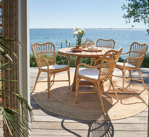 Margret Exterior es una silla de comedor para exteriores de diseño danés. La silla tiene un respaldo alto y ancho, así como reposabrazos, y es una silla extremadamente cómoda que invita a largas horas de relajación.