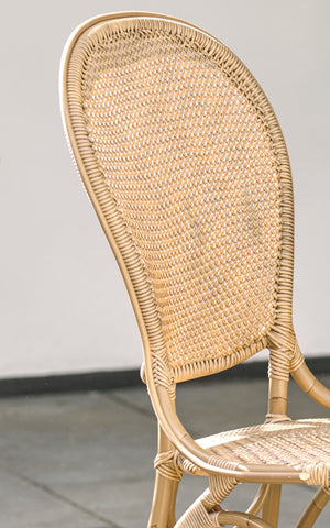 La silla Rossini Exterior está hecha a mano en aluminio y ArtFibre. Estos materiales son resistentes a los rayos UV y a la intemperie, por lo que el mobiliario puede permanecer al aire libre durante todo el año.