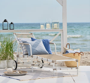 Los muebles de nuestra colección Exterior están hechos a mano en Alu-Rattan y Sika-Design ArtFibre®. El Alu-Rattan es aluminio recubierto de polvo que ha sido desarrollado para parecerse al ratán y su capacidad única de conformación. El recubrimiento en polvo tiene la ventaja de que puede soportar un uso duro y altas temperaturas.