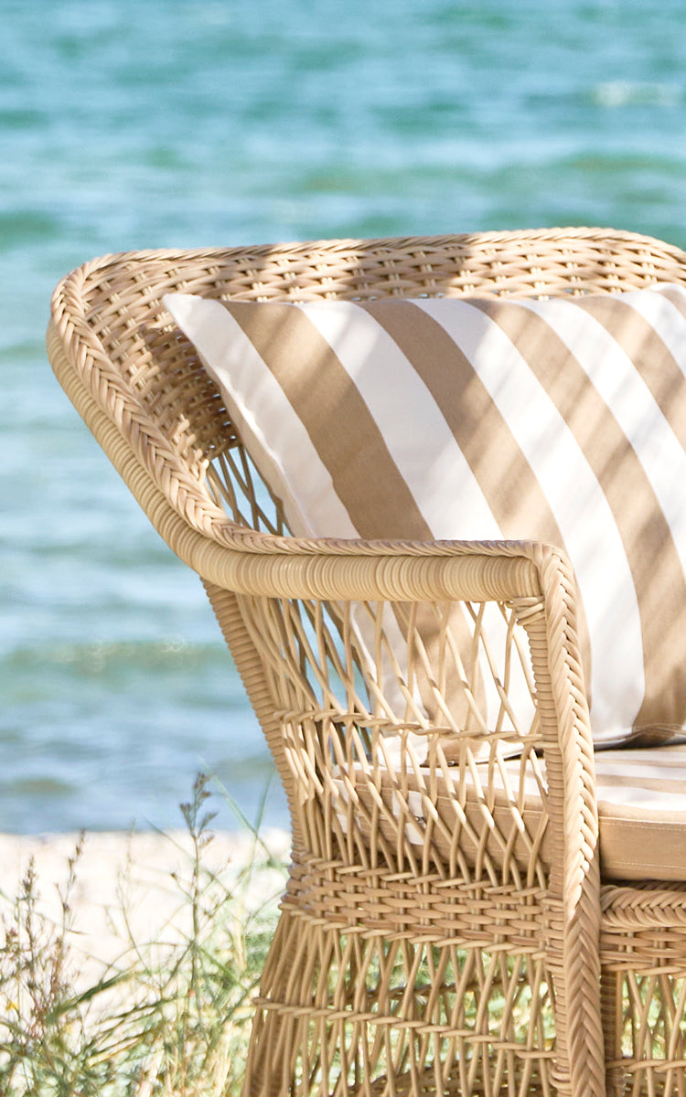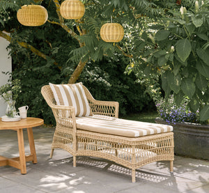 El Olivia Exterior Tumbona está diseñado por Sika-Design y forma parte de nuestra romántica colección Georgia Garden. La colección Georgia Garden está inspirada en el estilo colonial británico y en los muebles clásicos de mimbre danés.