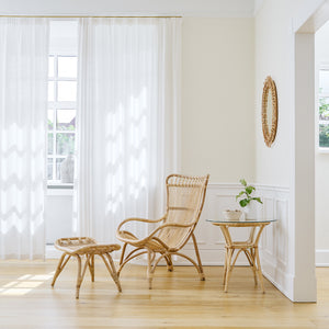 Este mobiliario está hecho a mano en ratán, que es uno de los materiales más sostenibles disponibles para la fabricación de muebles. A menudo se confunde el ratán con el bambú, pero a diferencia del bambú hueco, el ratán es un material sólido. Esto hace que los muebles de ratán sean muy duraderos y capaces de perdurar por generaciones.