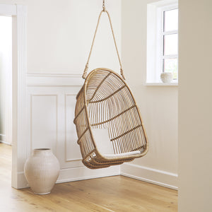 La hamaca cuelga en una cuerda resistente y está hecha a mano en ratán sostenible de Indonesia por hábiles fabricantes de mimbre. Desde el punto de colgado de la cuerda hasta la parte superior de la silla hay 110 cm y 121 cm hasta los puntos de sujeción en la silla. Sika-Design utiliza ratán cuidadosamente seleccionado para la producción de muebles para garantizar la más alta calidad.