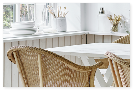 Clásico es una encantadora y hecha a mano silla de mimbre en diseño danés. La silla de comedor está hecha con el aclamado material Lloyd Loom que es una trenza de papel retorcida firmemente alrededor de alambre de acero. Lloyd Loom es notablemente resistente y en tiempos antiguos era la opción preferida de material de muebles para restaurantes, cruceros y dirigibles.