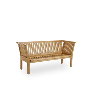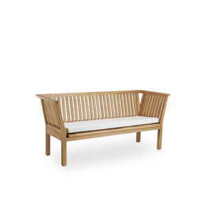 El banco St Catherine está hecho de madera de teca, conocida por su alta resistencia y su hermoso brillo. Gracias a su contenido de aceite natural, la madera es muy duradera y resistente al viento y a la intemperie, y no se ve afectada por insectos ni pudrición. Con el tiempo, los muebles de teca expuestos al sol y a la lluvia adquieren un hermoso color gris plateado.