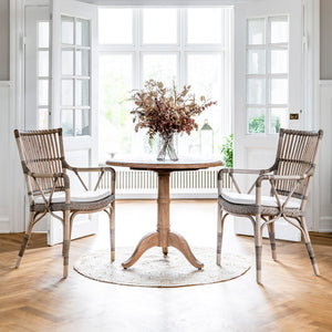 Nota: Nuestros productos de teca para interiores no son resistentes a las manchas, ya que creemos que los muebles lucen mejor con una pátina rústica, como la de los bistrós franceses, con manchas, círculos y otros signos de la buena época. Si desea mantener el color uniforme de los muebles, debe protegerlos con manteles individuales o similares.