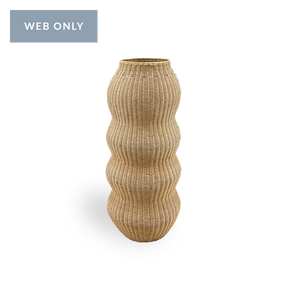 Unda es una gran cesta decorativa con una altura de 102 cm. La cesta está tejida a mano con el material natural ratán, por lo que puede haber pequeñas variaciones en color y forma.